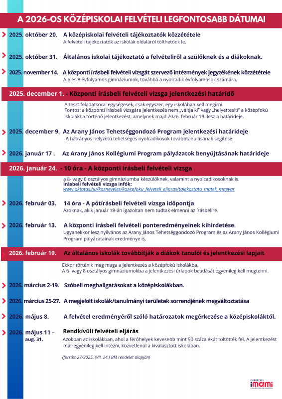 2026. május 8. - A felvétel eredményéről szóló határozatok megérkezése a középiskoláktól.